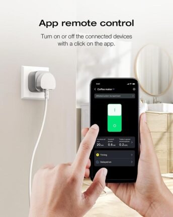 • APP REMOTE CONTROL: Turn on or off the connected devices with a click on the app from anywhere with an Internet connection. (2.4 GHz Wi-Fi Required)