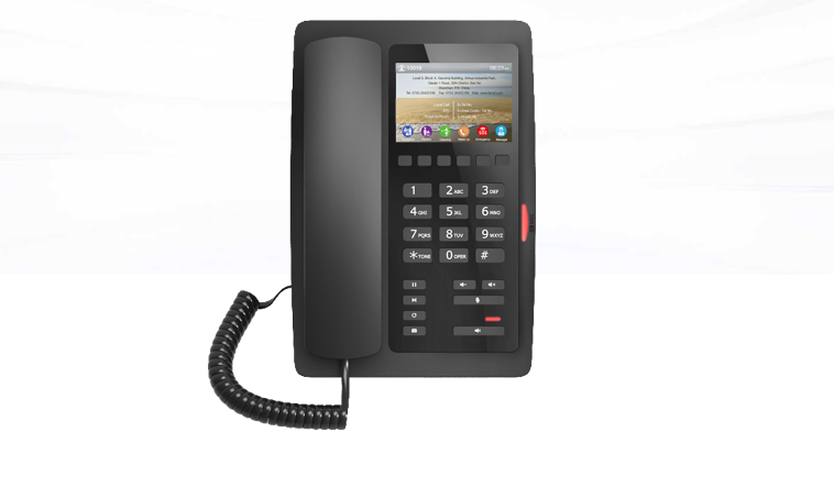 Fanvil H5 is a great and affordable choice for hotel IP phone. Possessing a 3.5-inch color screen, it is also an user-friendly hotel IP phone. Hotel could customize the information (such as hotel’s address, logo, related phone numbers and etc) on the screen, and bring a better living experience to the hotel guests.