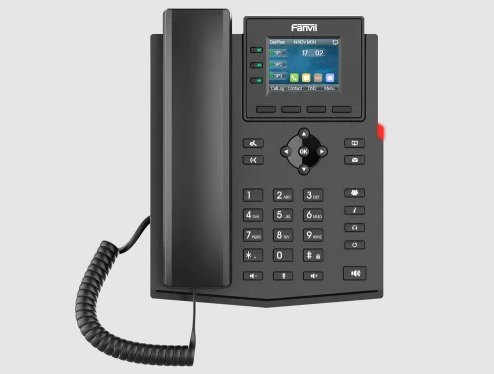 Fanvil X303P is the cost-effective color screen SIP phone with high performance specially for enterprise. It features a 2.4-inch 320×240 pixel color screen, supporting 4 SIP lines and local 6-party conferencing to render a user-friendly experience. Fanvil X303P has rich functions such as HD audio, dual 10/100 Mbps network ports and integrated PoE, providing an efficient and high-quality business communication experience for enterprises.