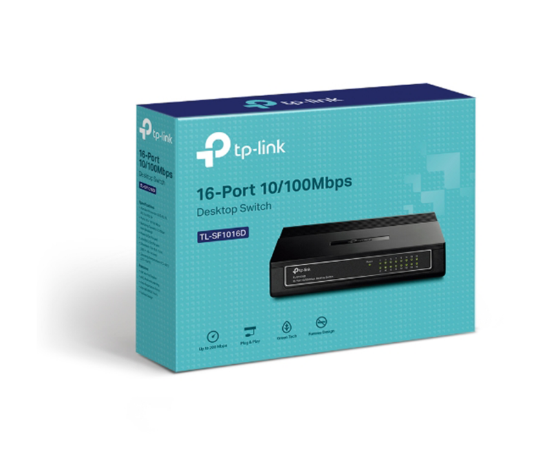 The Tplink 16-Port 10/100Mbps Desktop Switch TL-SF1016D is designed for SOHO (Small Office/Home Office) or workgroup users. All 16 ports support auto MDI/MDIX, no need to worry about the cable type, simply plug and play. Moreover, with the innovative energy-efficient technology, the TL-SF1016D can save up to 80%* of the power consumption and 70% of the packaging material can be recycled, making it an eco-friendly solution for your business network.