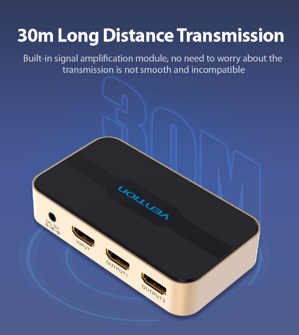 1.Vention HDMI 1 Input 2 Output Splitter support 4k*2k HD distribution, Anti interference dissipate heat, One-divided-two Audio visual synchronization, High activity processing Carefree transmission