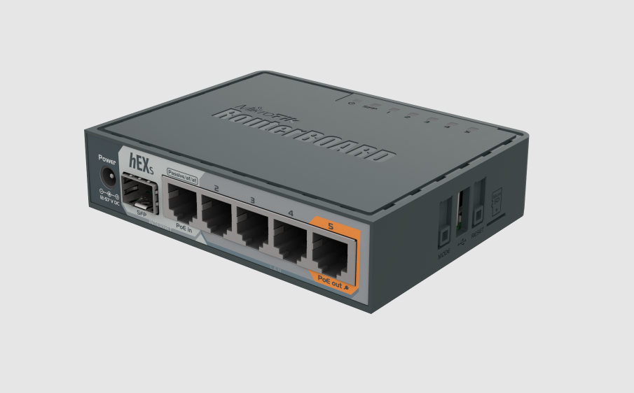 Mikrotik RB760iGS hEX S 5x Gigabit Ethernet SFP Dual Core 880MHz CPU is a five port Gigabit Ethernet router for locations where wireless connectivity is not required. Compared to the hEX, the hEX S also features an SFP port and PoE output on the last port.